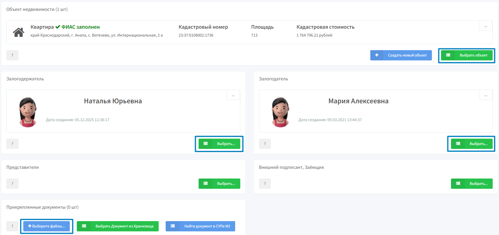 3. Добавляем сделку в списке заявлений с типом Регистрация ипотеки в силу договора (залога)