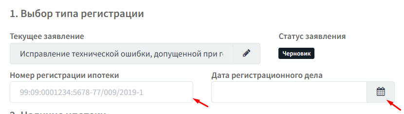 * Если заявление изначально было подано с ошибкой, для её исправления нужно выбрать тип регистрационного действия "Внесение изменений в запись ЕГРН (Право, Обременение, Ограничение)" или "Регистрация соглашения об изменении условия договора" (если было ДДУ)