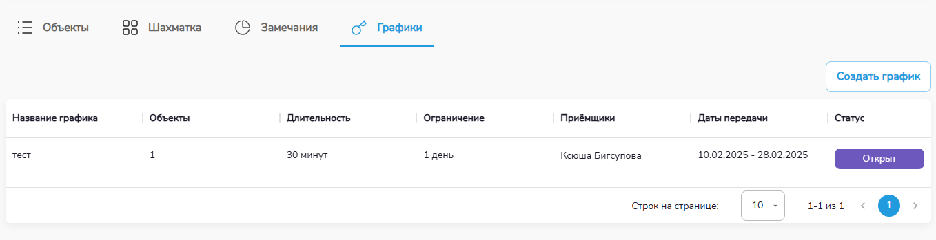 - Нажав на статус (к примеру "Подготовка к передаче") вы увидите историю действий по объекту