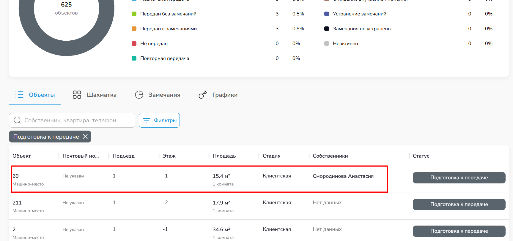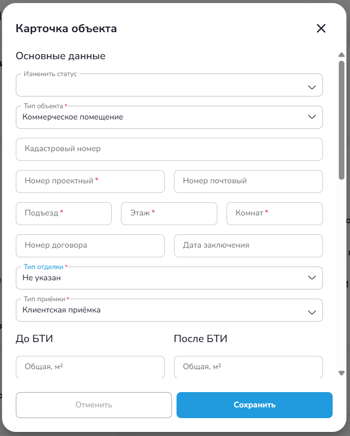 4. Появится окошко, в котором можете изменить данные по объекту, включая статус объекта.