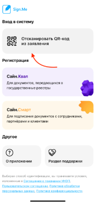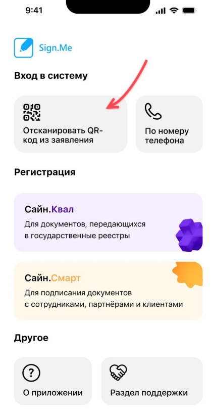 1. Установить приложение заново и выбрать вход по QR коду. Найти его можно через поиск по названию Sign.Me в вашем магазине приложений.