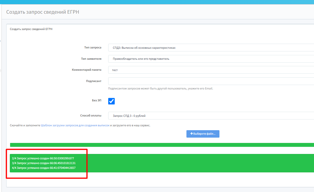 Пакетный заказ выписок ЕГРН при использовании ключа ФГИС