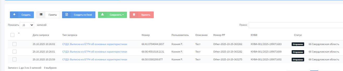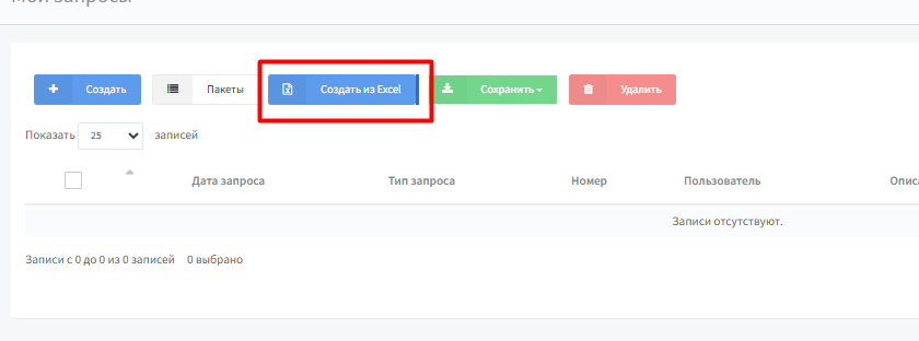 - Для массового заказа выписок переходим в раздел "Список запросов" и нажимаем "Создать из Excel"