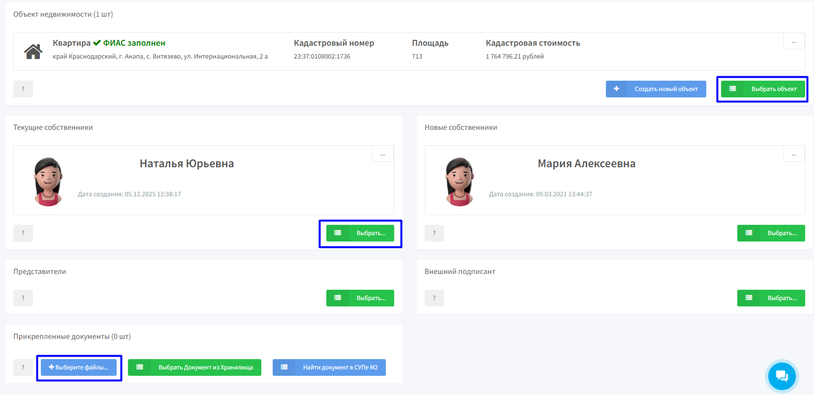 4.2 Выбираем участников сделки: нажимаем кнопку Выбрать в нужных разделах.