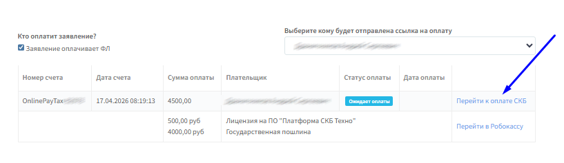 Ссылка на счет также доступна вам при нажатии на “Перейти к оплате СКБ”